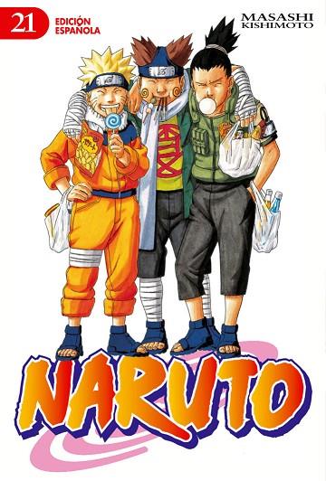Sasuke abandona a sus compañeros y huye de la Villa Oculta de la Hoja. ¡¿Habrá cedido a la tentación que representa Orochimaru?! Shikamaru, recién nombrado ninja de grado medio, recibe órdenes de la quinta Hokage y reúne a Naruto, Neji, Kiba y Chôji para traerle de vuelta. Los cinco chicos y el perro salen en busca de Sasuke.Título original: Naruto 21