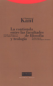 La contienda entre las Facultades de Filosofía y Teología tiene su génesis en el enfrentamiento de Kant con la censura prusiana. Acicateado por los problemas que le planteó algún ministro del sucesor de su admirado Federico el Grande, el filósofo de Königsberg decide reivindicar el papel de la filosofía como depositaria de los auténticos intereses de la razón, del puro afán de saber, situándola en el ala izquierda del parlamento universitario. Su misión es velar por la búsqueda de la verdad y por ello debe verse a salvo de cualquier injerencia por parte del poder político. Es al calor de semejante reivindicación como se acrisolan los planteamientos kantianos en torno a su concepción de la teología y la filosofía de la religión. Por otra parte, cabe destacar el hecho de que la estructura del texto, tal y como es presentado en esta edición, se muestra totalmente respetuosa con el esquema proyectado por su autor.