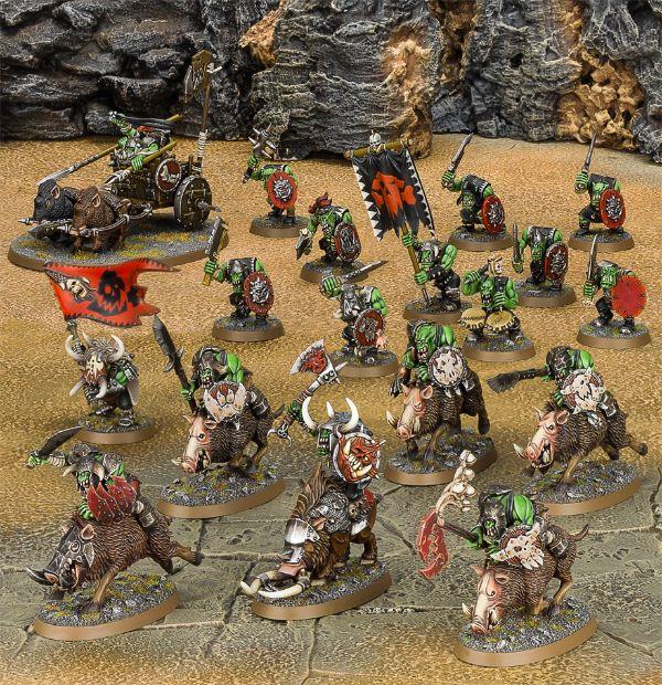 Nada alegra más a un piel verde que aporrear cosas. Tanto los brutos orruks, como los astutos grots y, por supuesto, los borrachuzos gargants y los simplones troggoths, todos viven por y para el día en que se declare el Gran ¡Waaagh! Este evento, en parte cruzada, y en parte brote de anarquía total, barrerá los reinos asolándolo todo a su paso.