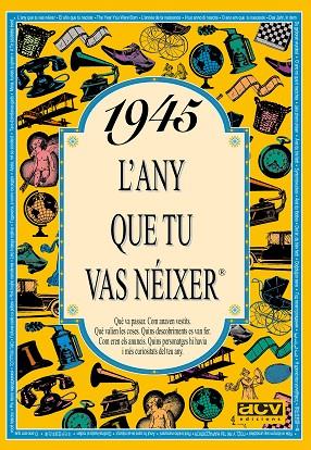 El llibre de 1945 conté una selecció de notícies curioses que van passar aquell any, imatges, anuncis i en general tot allò per entendre com era el món aquell any, com era la moda, què es va inventar, quins anuncis hi havia, les cançons i les pel·lícules d'èxit, quant valien les coses, quins personatges famosos destacaven, i moltes coses més. Aquest llibre de 1945 forma part de la popular col·lecció "L'any que tu vas néixer". Un detall ideal per al protagonista de la festa d'aniversari, o per sorprendre a cadascun dels convidats del teu proper sopar amb amics o família. Posa el llibre de l'any de cada convidat al seu lloc de la taula i veuràs la sorpresa quan se'l trobin. De seguida es trencarà el gel amb converses apassionades plenes de records. La col·lecció "L'any que tu vas néixer" va de 1920 a 2004.