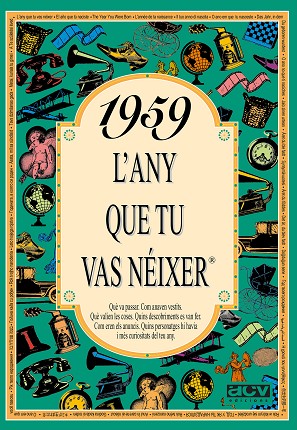 El llibre de 1959 conté una selecció de notícies curioses que van passar aquell any, imatges, anuncis i en general tot allò per entendre com era el món aquell any, com era la moda, què es va inventar, quins anuncis hi havia, les cançons i les pel·lícules d'èxit, quant valien les coses, quins personatges famosos destacaven, i moltes coses més. Aquest llibre de 1959 forma part de la popular col·lecció "L'any que tu vas néixer". Un detall ideal per al protagonista de la festa d'aniversari, o per sorprendre a cadascun dels convidats del teu proper sopar amb amics o família. Posa el llibre de l'any de cada convidat al seu lloc de la taula i veuràs la sorpresa quan se'l trobin. De seguida es trencarà el gel amb converses apassionades plenes de records. La col·lecció "L'any que tu vas néixer" va de 1920 a 2004.
