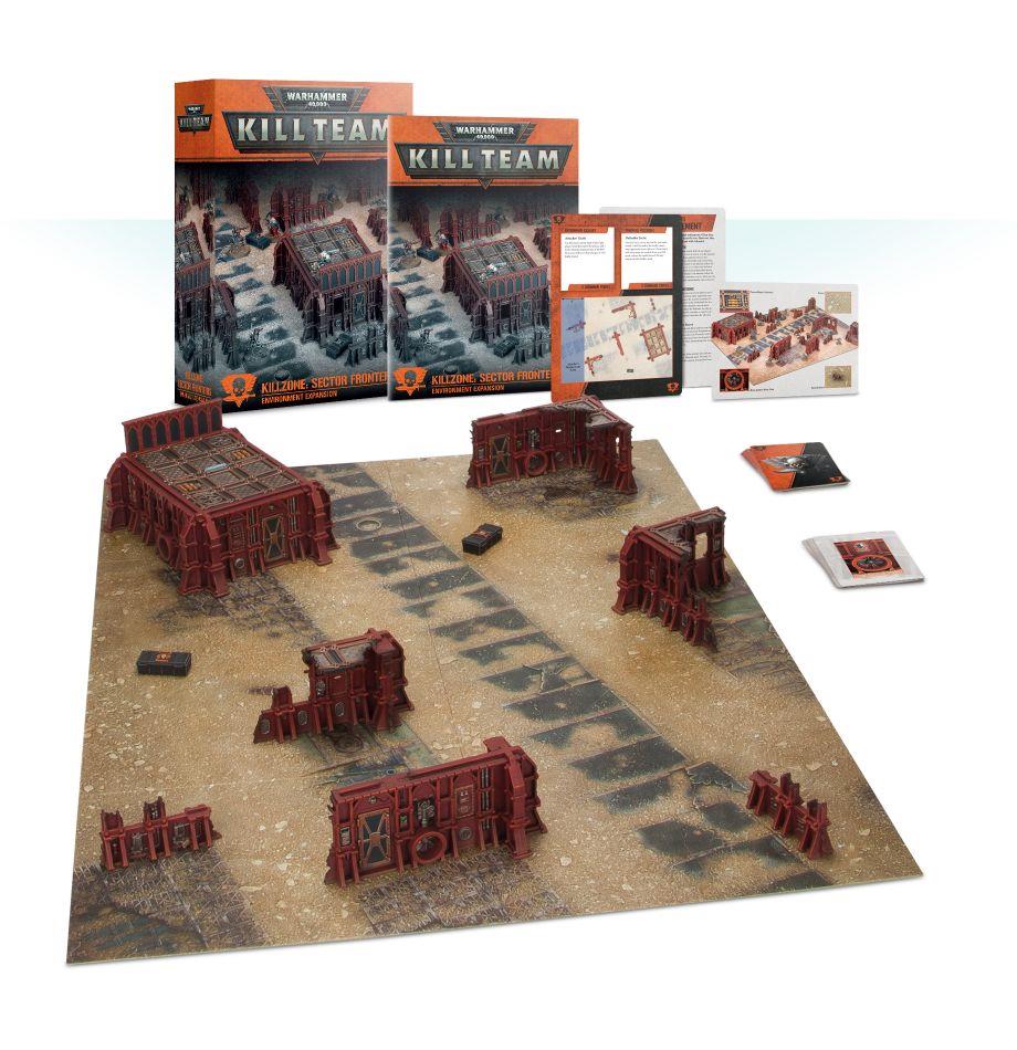 The Sector Fronteris Killzone Environment is an expansion for Kill Team - in the packed box, you'll find a gameboard, scenery, and exclusive rules that use the unique nature of the Sector Fronteris terrain to introduce dangerous new missions and powerful effects to your games. Included: