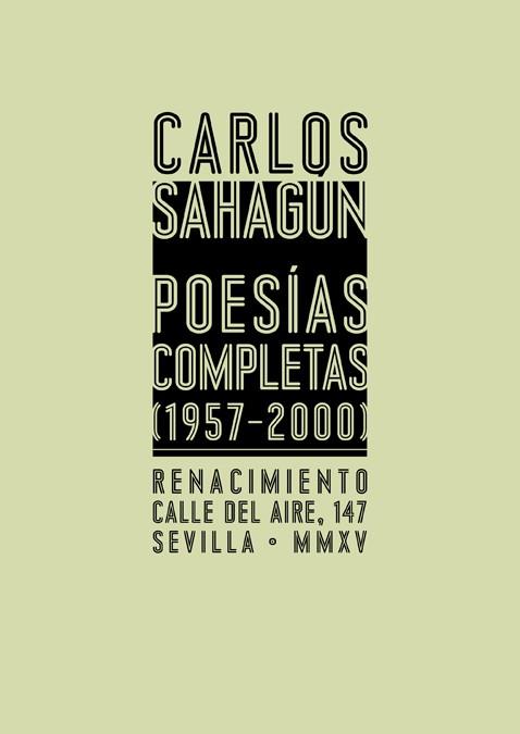 Estas Poesías Completas fueron corregidas por el autor y preparadas para imprimir unas semanas antes de su fallecimiento. Reúne la totalidad de los libros publicados por Carlos Sahagún (Onil, Alicante, 1938-Madrid, 2015) con la excepción de los sonetos de una plaquette de 1955, e incluyendo, bajo el epígrafe de «Últimos poemas 1978-2000», 28 poesías inéditas de un libro cuyo título, El lugar de los pájaros, no consideró recuperar.