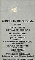 Esta antología tan brillante titulada Cónsules de Sodoma por el poeta Jaime Gil de Biedma para esta edición en lengua castellana, reúne algunas de las entrevistas a conocidos poetas, novelistas, dramaturgos y compositores gay, publicadas, entre 1973 y 1978, en la revista cultural “Gay Sunshine” de San Francisco, California. En este primer volumen, incluimos las entrevistas a Allen Ginsberg, John Giorno, Christopher Isherwood, Roger Peyrefitte, Ned Rorem y Tennessee Williams. El segundo volumen llevará las entrevistas a William Burroughs, Jean Genet, Lou Harrison, John Rechy y Gore Vidal.