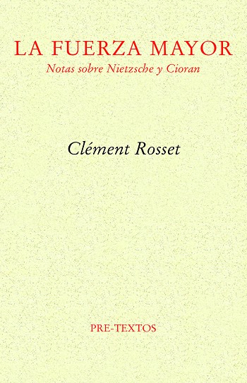 La presente obra es, sin duda, un buen exponente de la producción filosófica de Rosset. El concienzudo análisis de esa fuerza mayor que es la alegría, punto neurálgico de toda su filosofía, y su incidencia –presente o ausente– en el que quizá sea el máximo antagonismo filosófico al que puede llegarse a este respecto. Si «Notas sobre Nietzsche», uno de los estudios más lúcidos sobre la filosofía del discípulo de Dionisio y, sin duda, el más nietzscheano de todos ellos, ilustra un modo particular de concebir la filosofía, consagrada a destacar el elemento de la afirmación, «El descontento de Cioran» muestra a la perfección el caso contrario, a saber, el inconveniente de haber nacido, la teórica imposibilidad de aclimatarse a la irremediable y fatal aspereza de lo real.