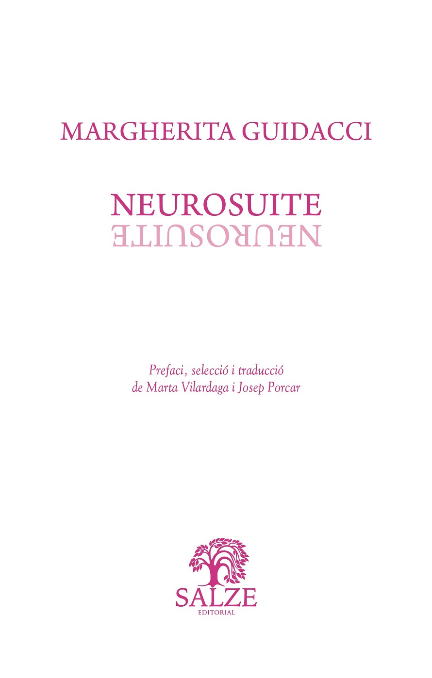 AQUESTA ANTOLOGIA PORTA PER PRIMERA VEGADA AL CATALÀ el llibre complet Neurosuite i una atenta selecció que recorre llibre per llibre l’extens corpus poètic de la florentina. En un ferm i constant diàleg temps-eternitat-mort, els seus versos –en ocasions al·legòrics i mordaçment al·lusius, però sempre unívocs i límpids amb la franquesa eloqüent d’un acte de fe–, atenyen una espiritualitat lluminosa guiada per una poderosa claredat expressiva, i una discreta i no obstant efusiva i punyent veu baixa amb què es fan llegir intel·ligiblement. Aquests elements distintius a penes tenen comparació en la poesia italiana i europea contemporànies. Guidacci pugna perquè no entri cap foscor ni cap ambigüitat –tampoc cap escarafall ni cridòria– als seus versos profundament humans, enèrgics i atemporals.